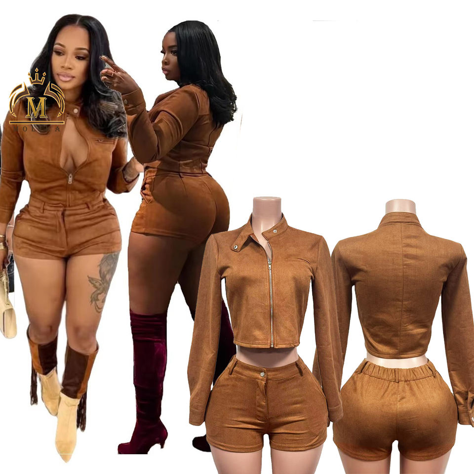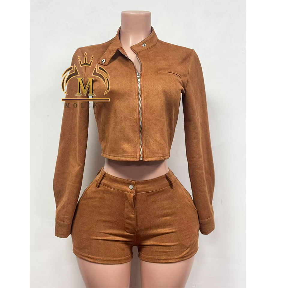 New Spring Fall Women's Outfits Suede Crop Jacket+Shorts Matching 2 Piece Set Sexy Y2K Suede Two Piece Set Women Clothing 2026