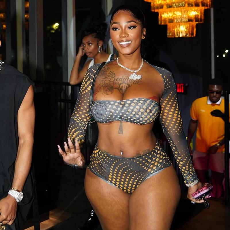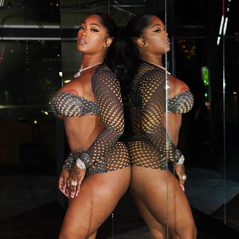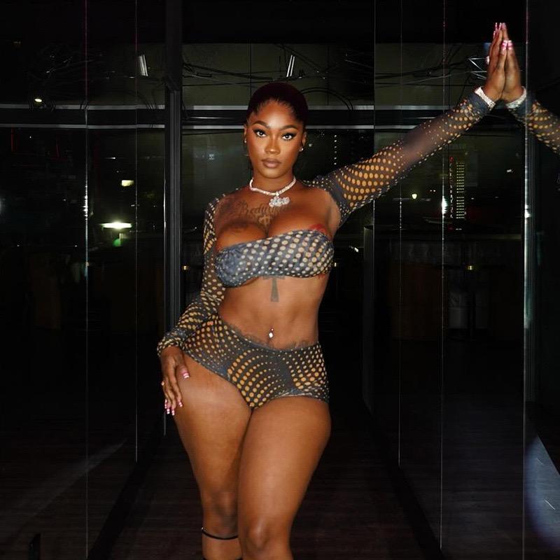 Nuovo Completo Estivo a Tre Pezzi in Rete Elasticizzata Sexy con Top a Fascia, Top Corto a Maniche Lunghe e Pantaloncini Aderenti