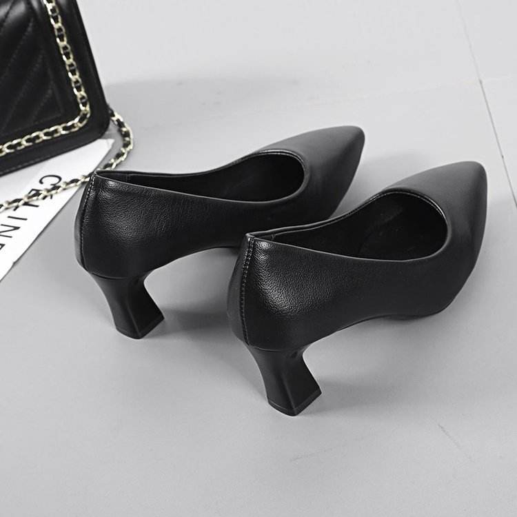Nuova primavera décolleté in pelle da donna con tacco alto a punta altezza media abito da ufficio nero formale