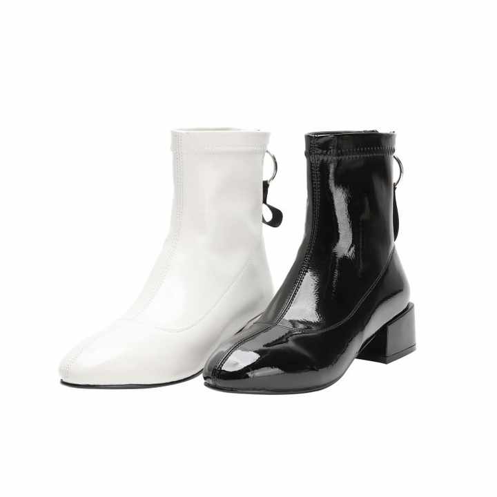 New Spring and Autumn British Style Medium Heel Large Boots White Thick Heel Women's Boots