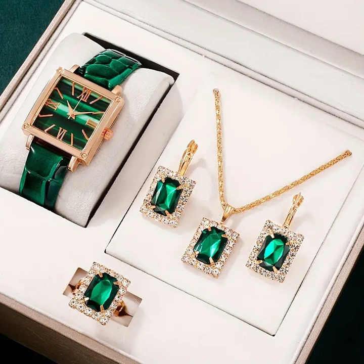 New Square Roman Watch and Jewel Bracelet Set square Belt Watch + square Jewel Bracelet Set Luxury Women's Quartz Watch