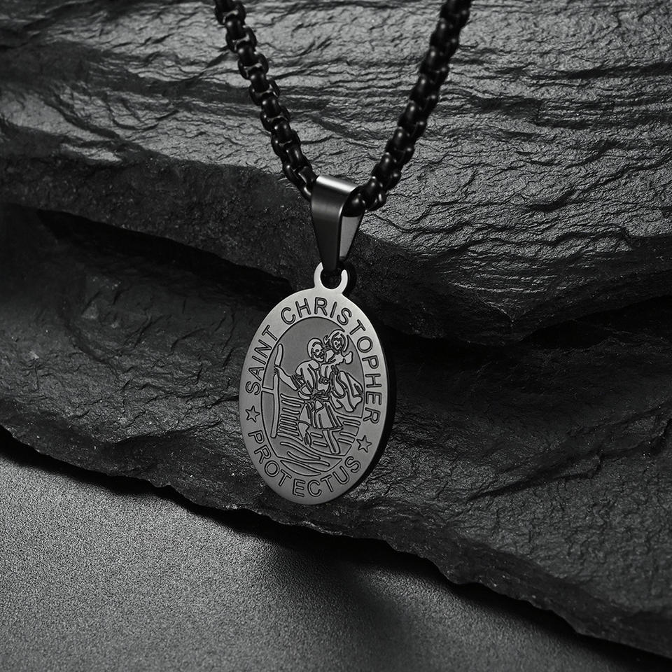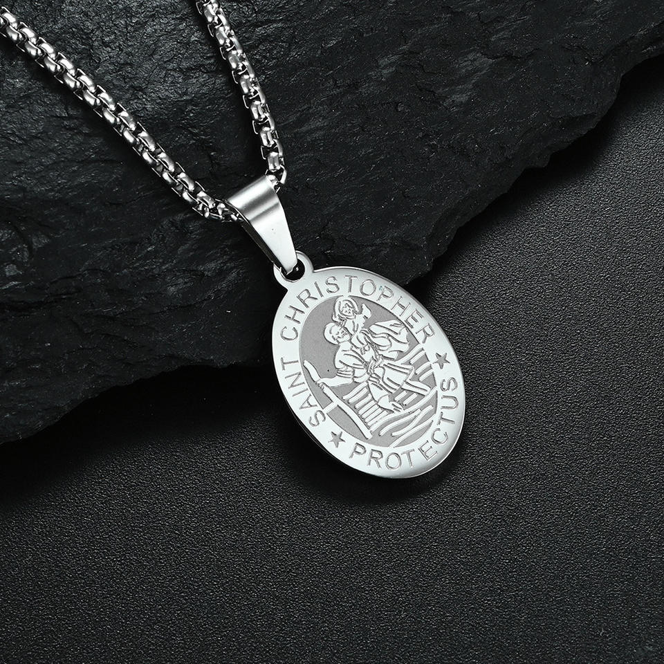 New Stainless Steel Archangel Saint Michael Necklace Saint Christopher Medal Religious Christian Pendant Necklace