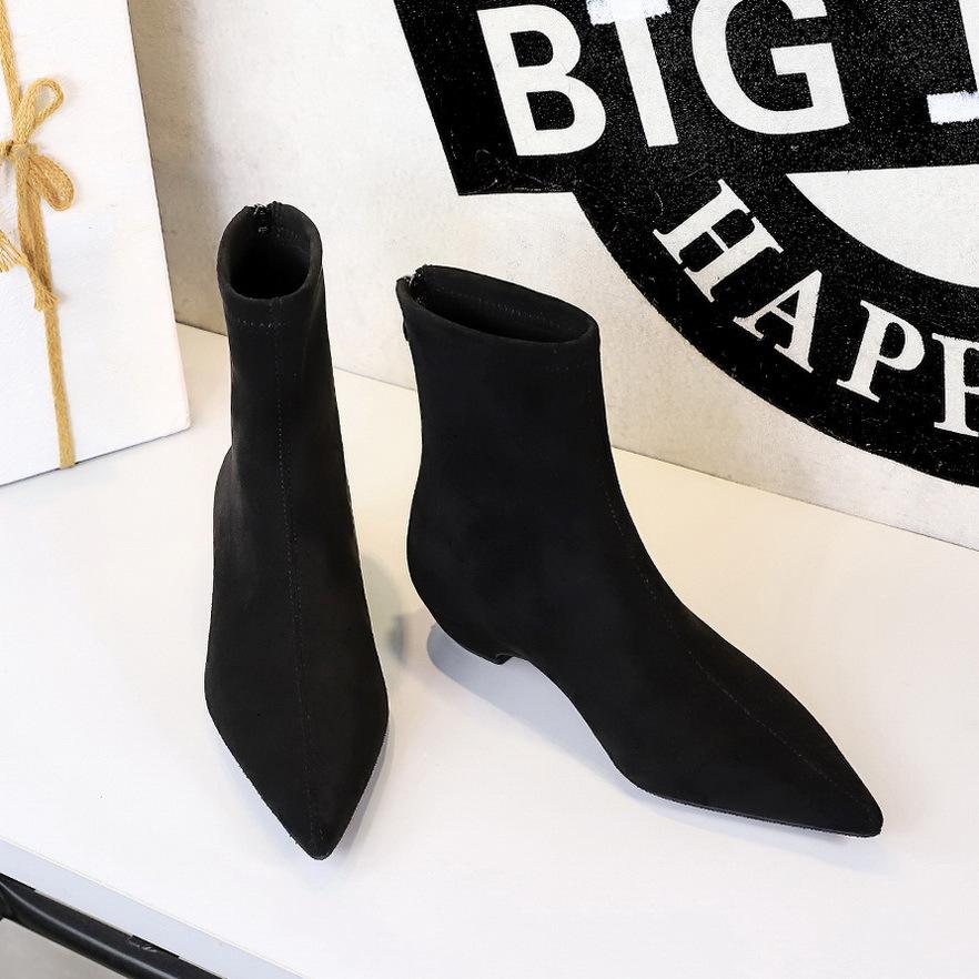Nuovi Stivaletti alla Caviglia 2026 con Punta Affusolata in Finta Pelle Scamosciata, Colore Nude, con Cerniera, Tinta Unita