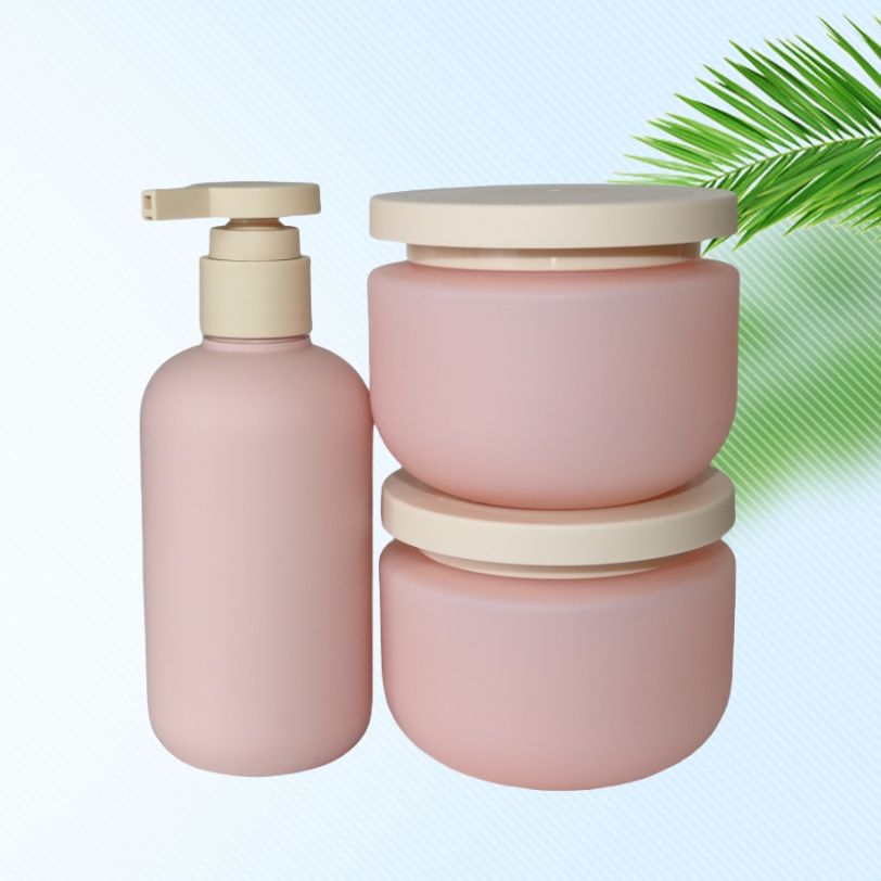 Set di Contenitori Nuovo Stile in Plastica HDPE Rosa: Vaso per Crema da 250g, Vaso per Maschera, Flaconi per Lozione e Shampoo da 100ml, 200ml, 300ml