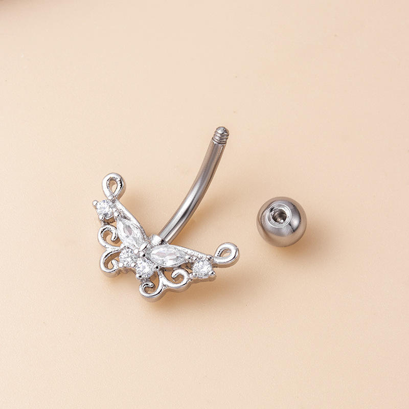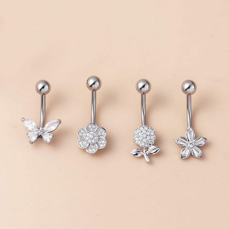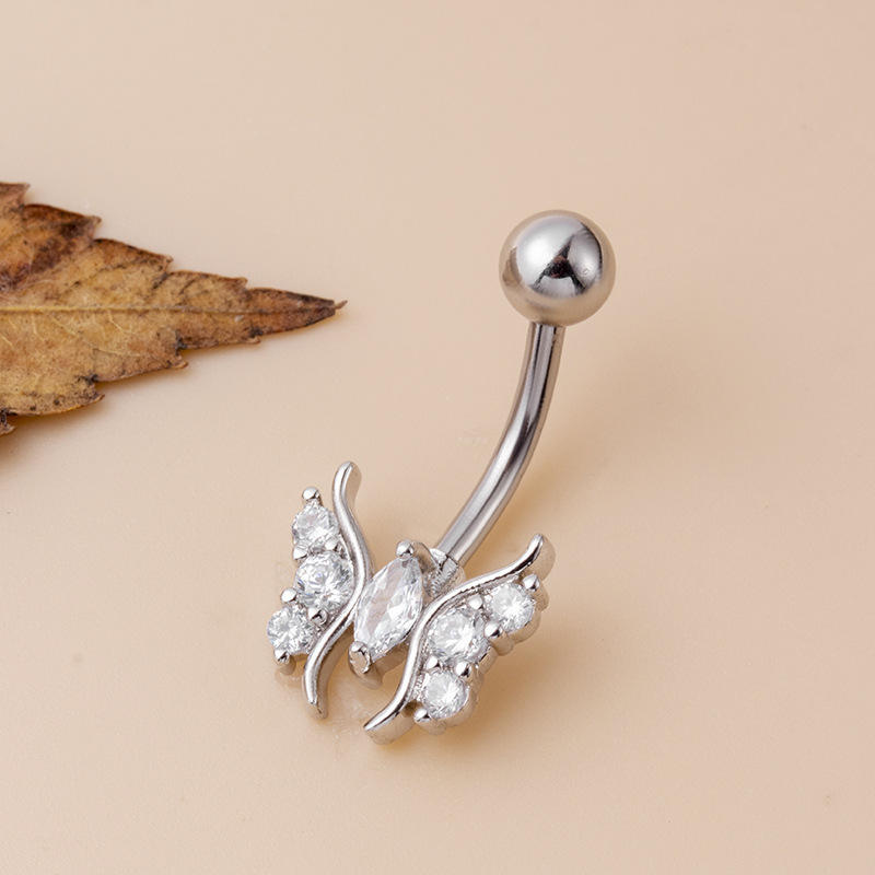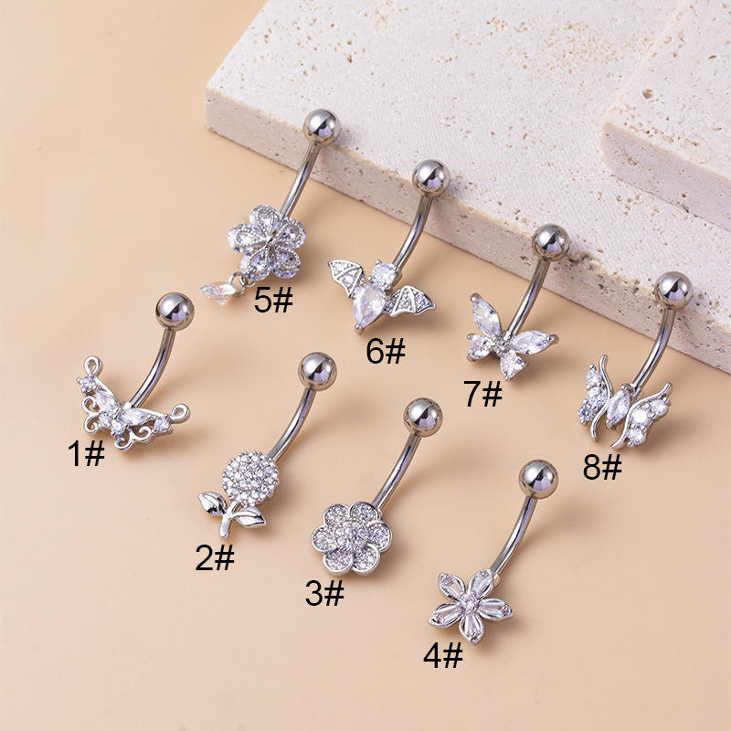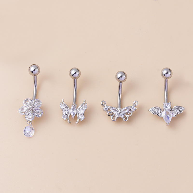 Nuovo stile ventre anello in acciaio inox 14G ventre Piercing gioielli zirconi farfalla pipistrelli fiore per le donne all'ingrosso