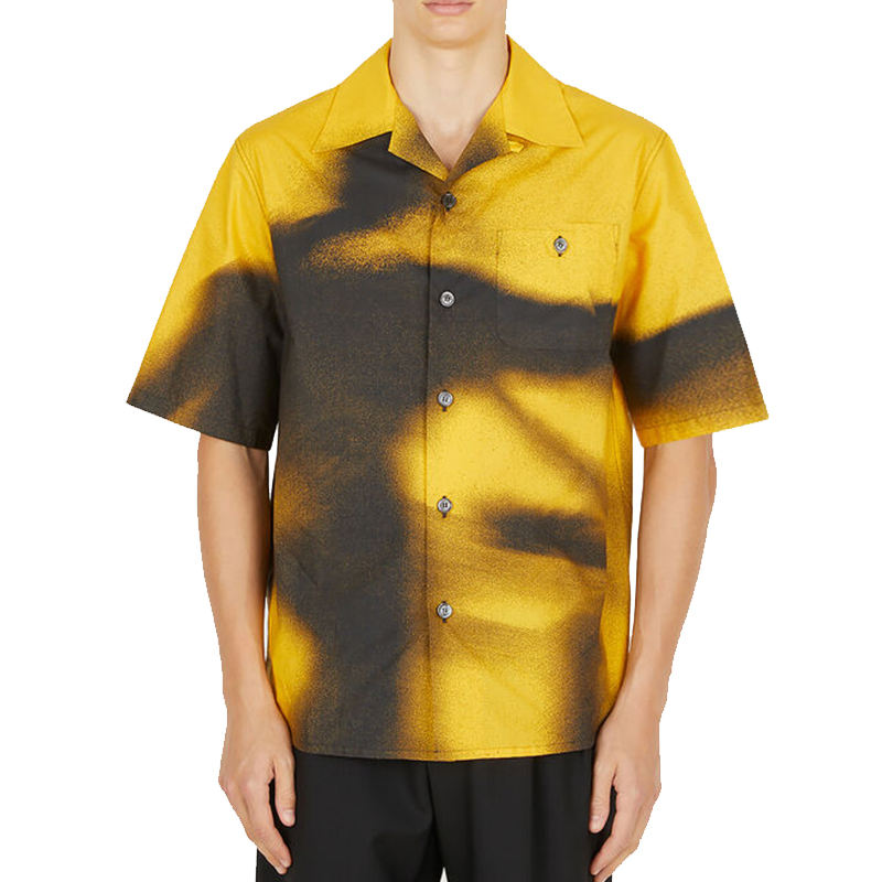 New Style Cotton Fabric Wide Collar Short Sleeve Graffiti Spray Paint Pattern Shirts for Man