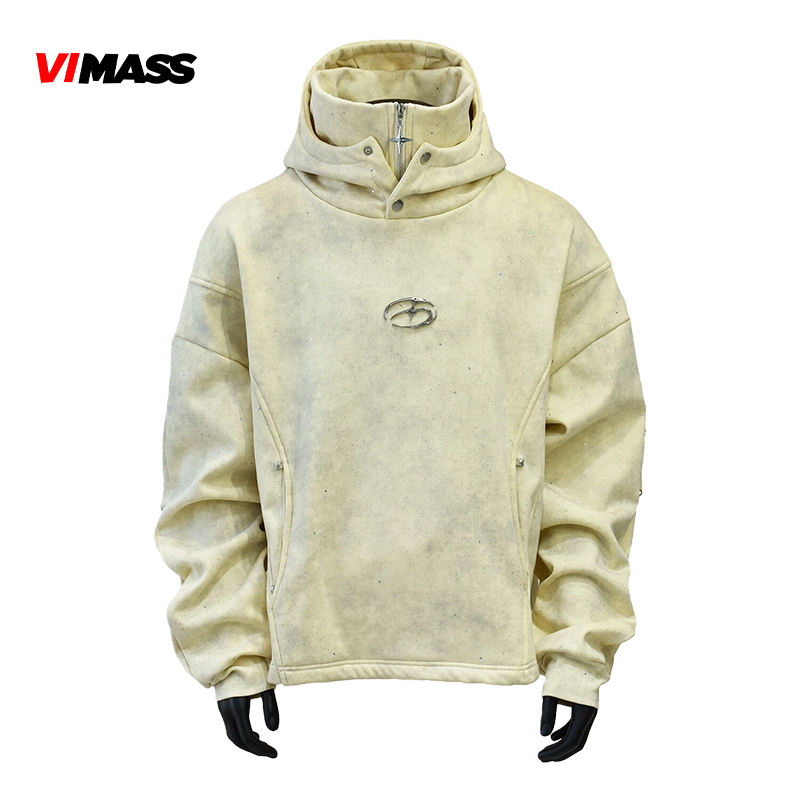 Nuova Felpa Oversize in Cotone Pesante con Collo Alto e Zip a Stella, Stile Streetwear Casual Trendy per Uomo, Personalizzabile