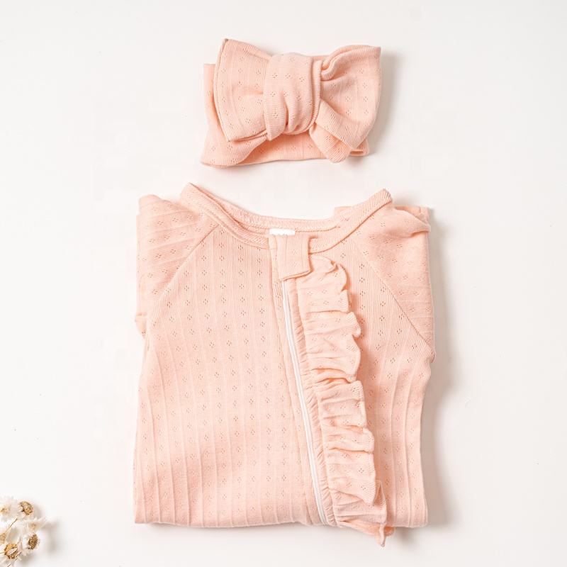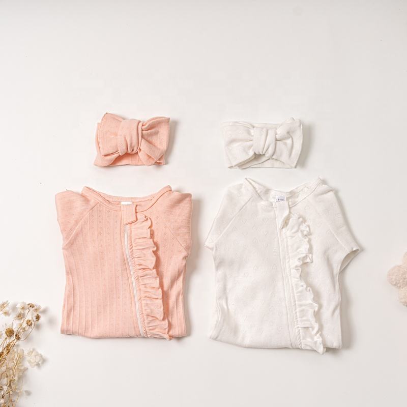 Nuovo stile personalizzato tinta unita morbido volant basic manica lunga neonato 100% cotone pagliaccetto bambina