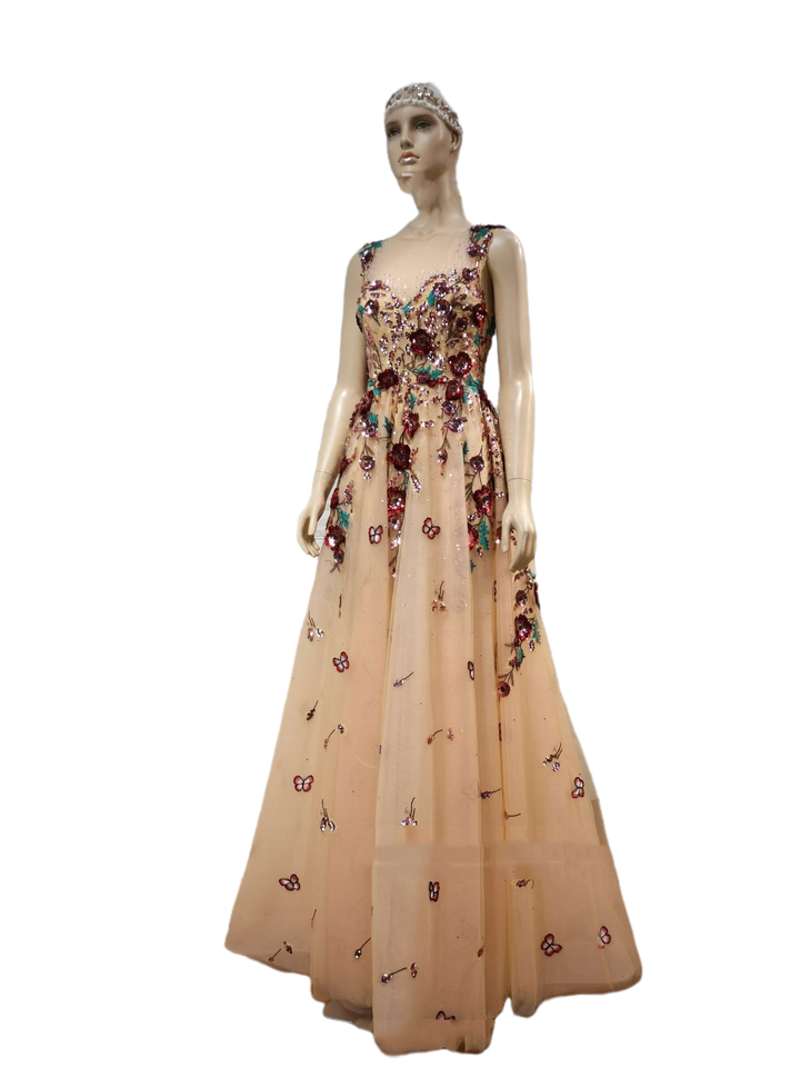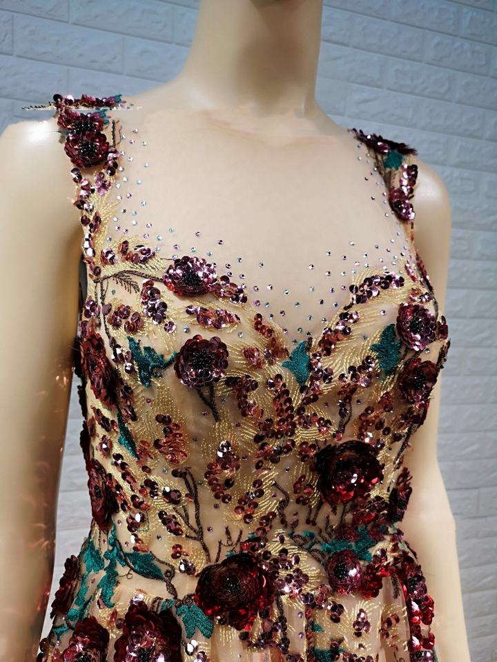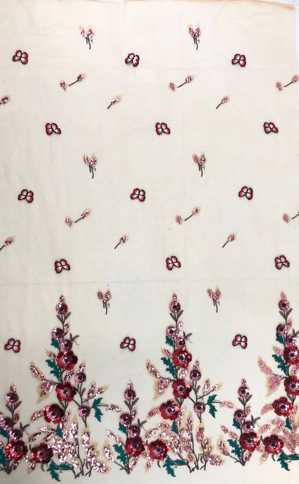 Parole chiave:Tessuto ricamato con fiori grandi multicolori con paillettes 3D