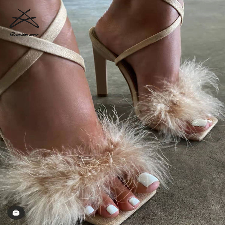 Nuovi Sandali da Donna con Piume, Scarpe con Plateau e Lacci alla Caviglia, Sandali con Tacco Alto Stravagante per Club e Feste
