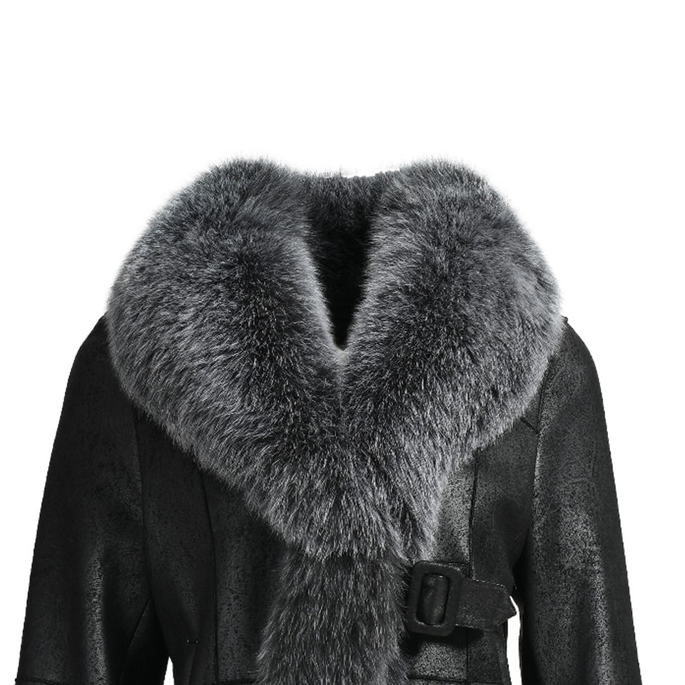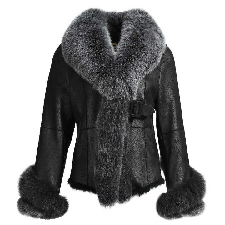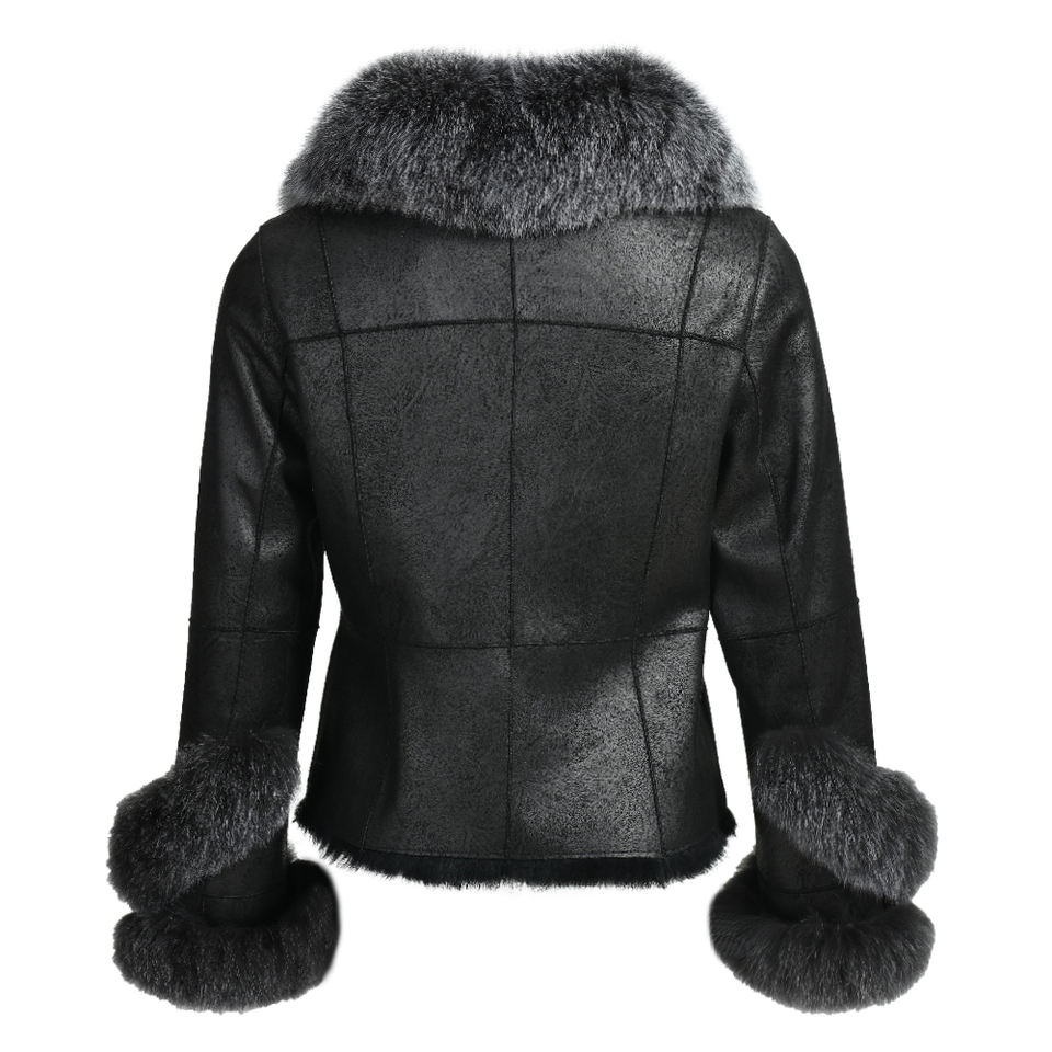 Giacca di nuovo stile genuina con collo e polsini in pelliccia di volpe di lusso caldi cappotti invernali con vera pelliccia da donna in Shearling