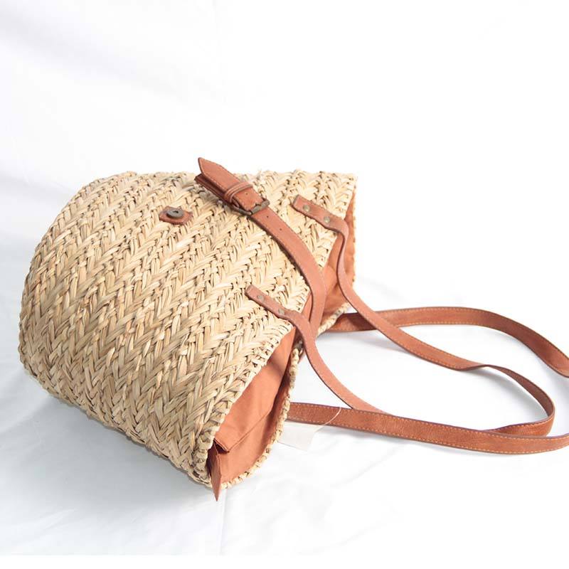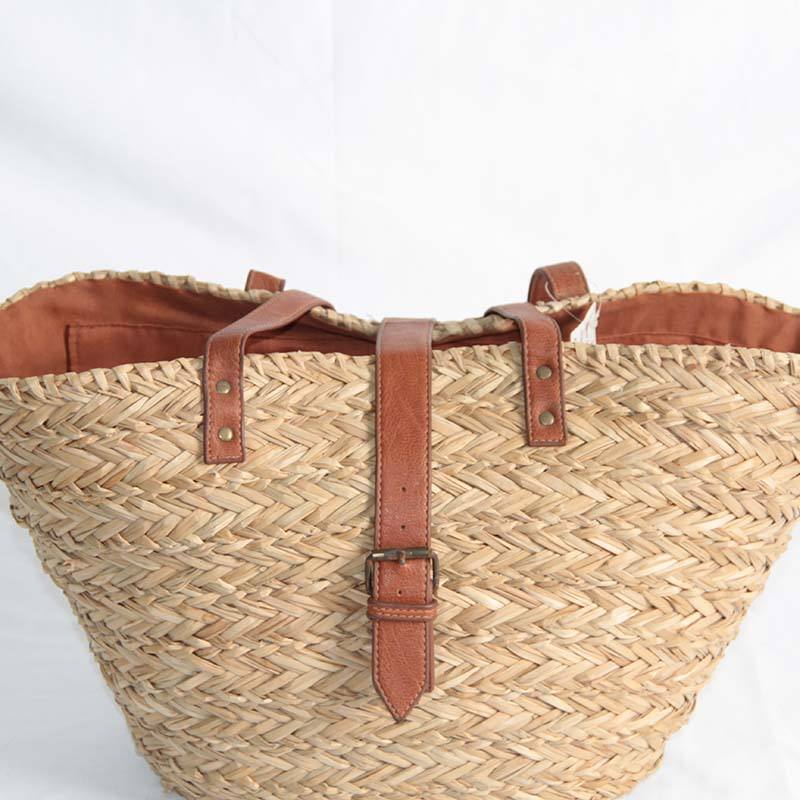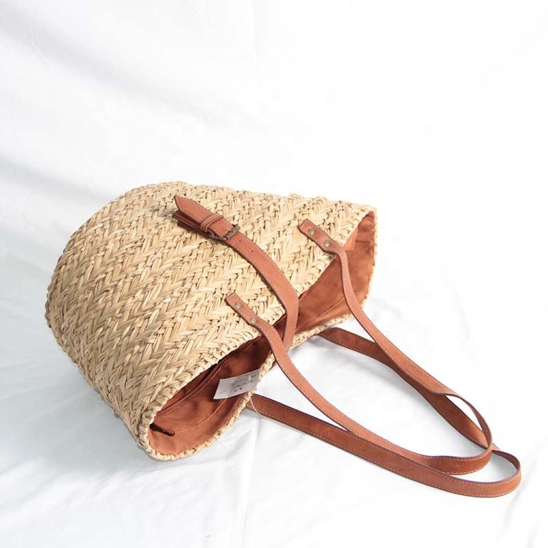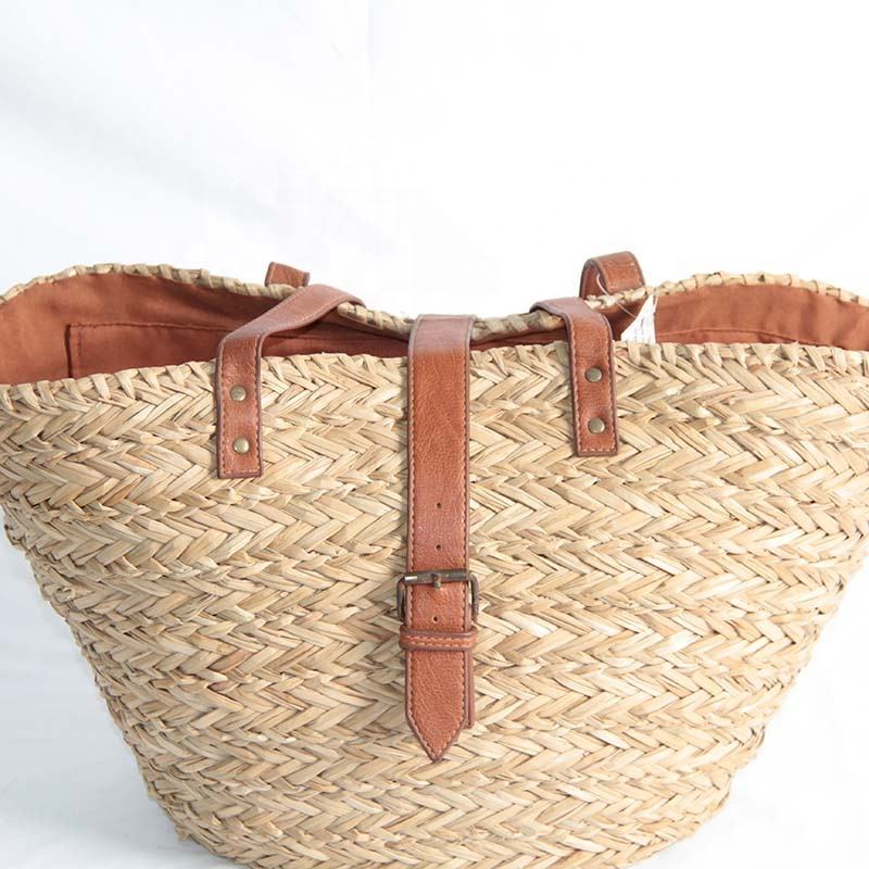 New Style Handmade Natural Material Leather Handle Tote Bag Sea Grass Straw Ladies Shoulder Bag Seagrass Beach Bag for Women