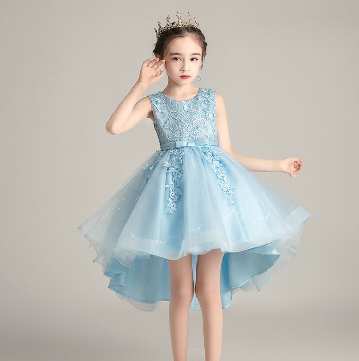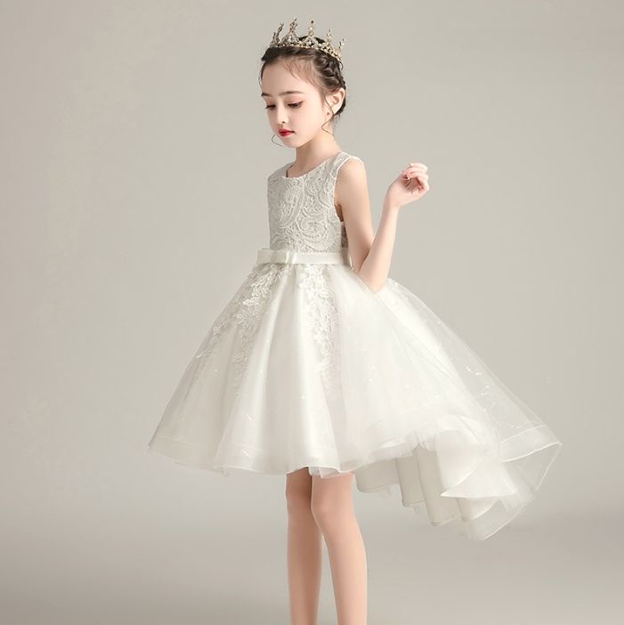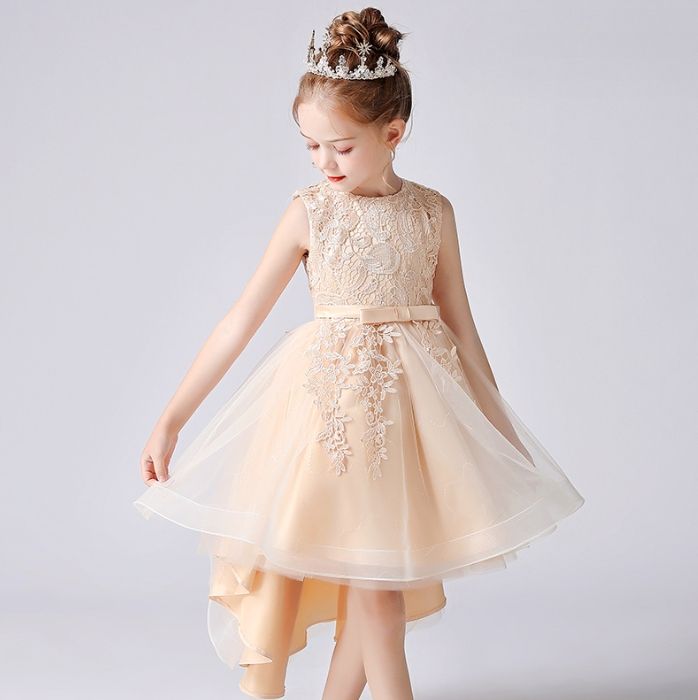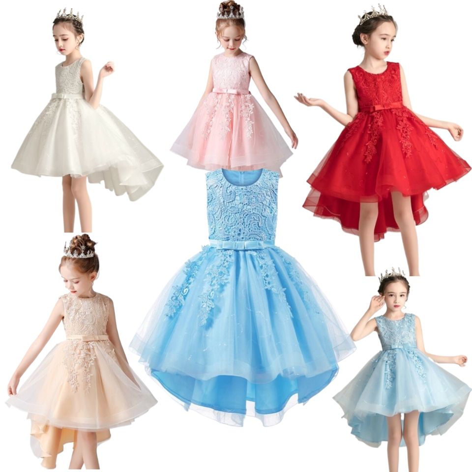 Nuovo Stile Della Principessa Abiti da Sera di Colore Solido Della Rappezzatura Del Merletto Delle Ragazze Vestiti da Partito Abito da Sposa Ragazza di Fiore
