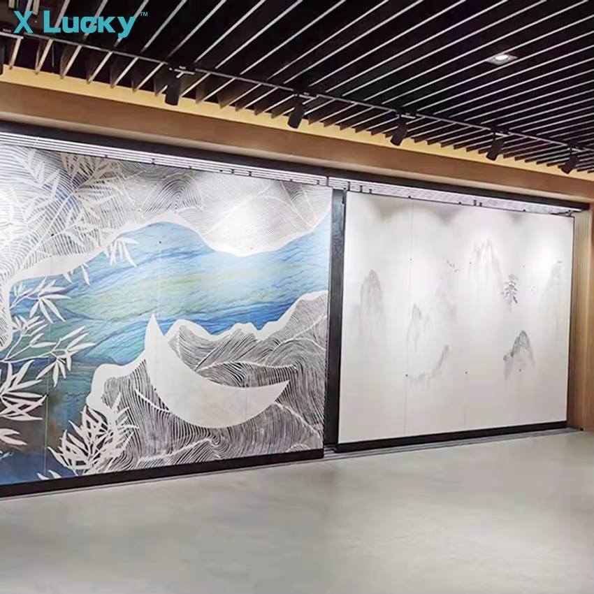 Nuovo stile Showroom Open Slat parete negozio Showroom tessuti fieristico per esposizione a soffitto appesi piastrelle Rack
