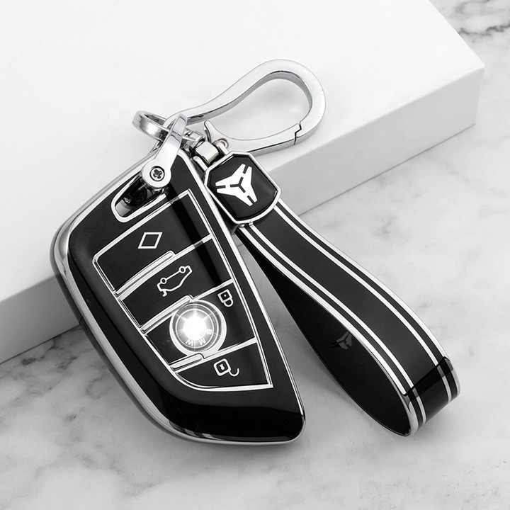 Nuova Custodia per Chiave Auto in TPU con Bordo Argento e Portachiavi per Serie F30 G20 F34 F10 G30 X3 F25 X4 I3 M3 M4 135