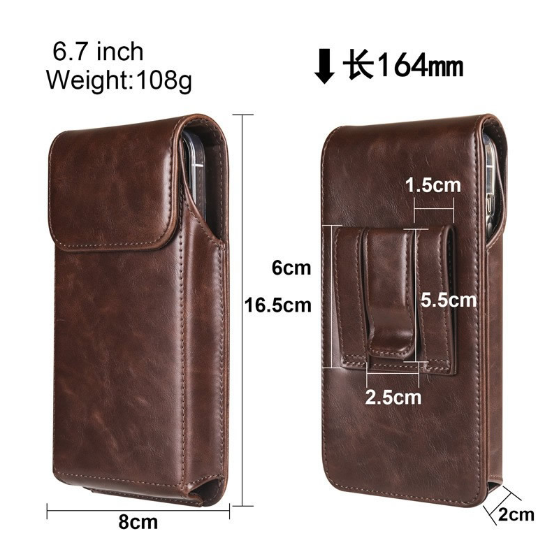New Style Vintage Premium Crazy Horse Leather RFID Magnetic Portable Phone Holster Personalized Universal Waist Phone Pouch