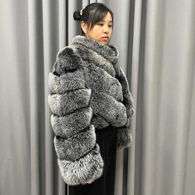 Pelle intera di pelliccia con taglio a righe