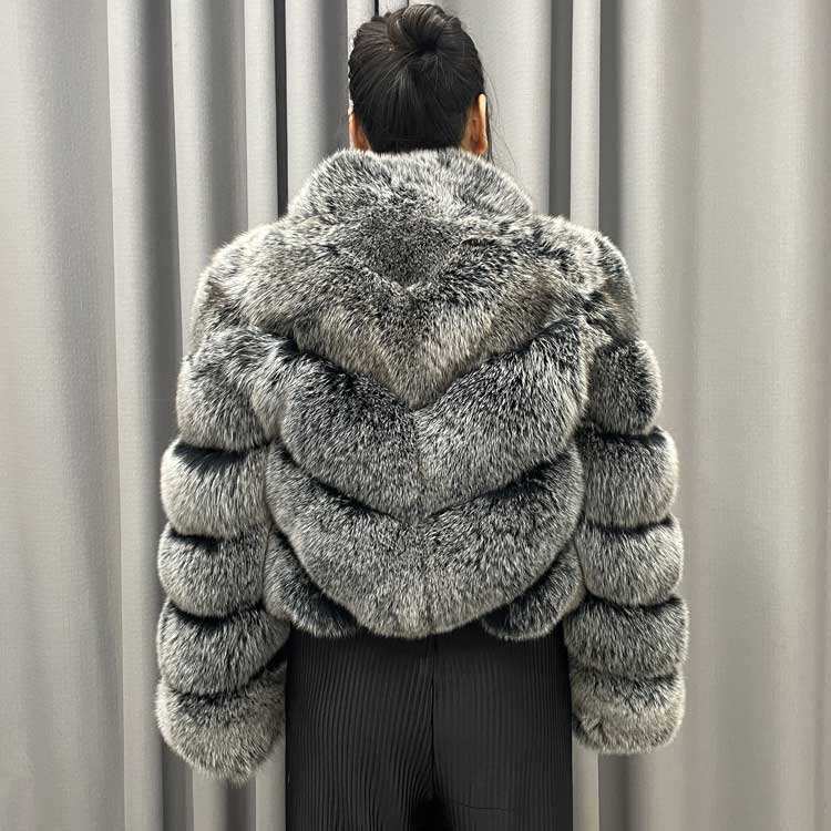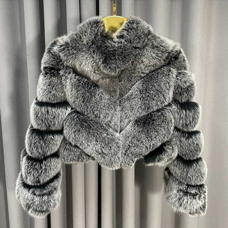 Nuovo Stile Invernale Moda Casual Traspirante Fodera in Cotone Fodera in Seta Cappotti Corti in Pelliccia Scollo a V Collo Alto Vera Pelliccia di Volpe per Signore