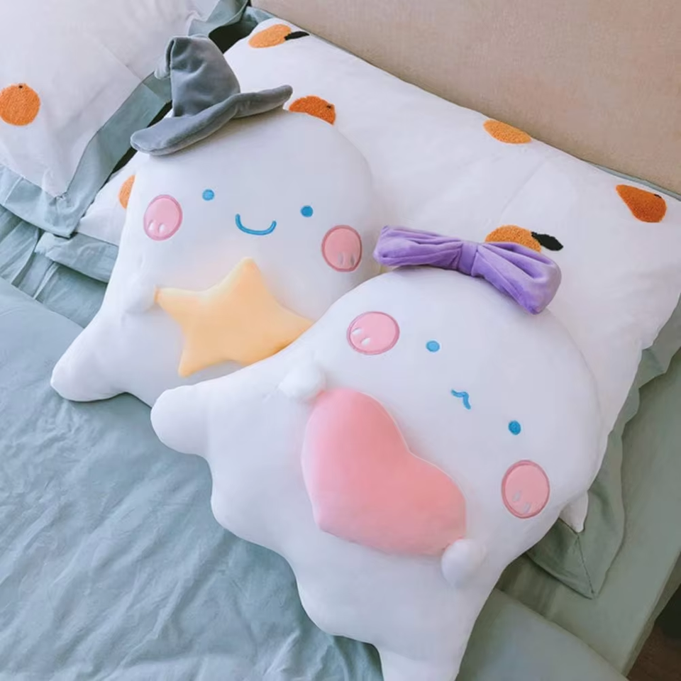 Nuovo elegante peluche a forma di fantasma con cuore stella adorabile cuscino decorativo per divano grandi regali per ragazze donne graziosi giocattoli morbidi Kawaii