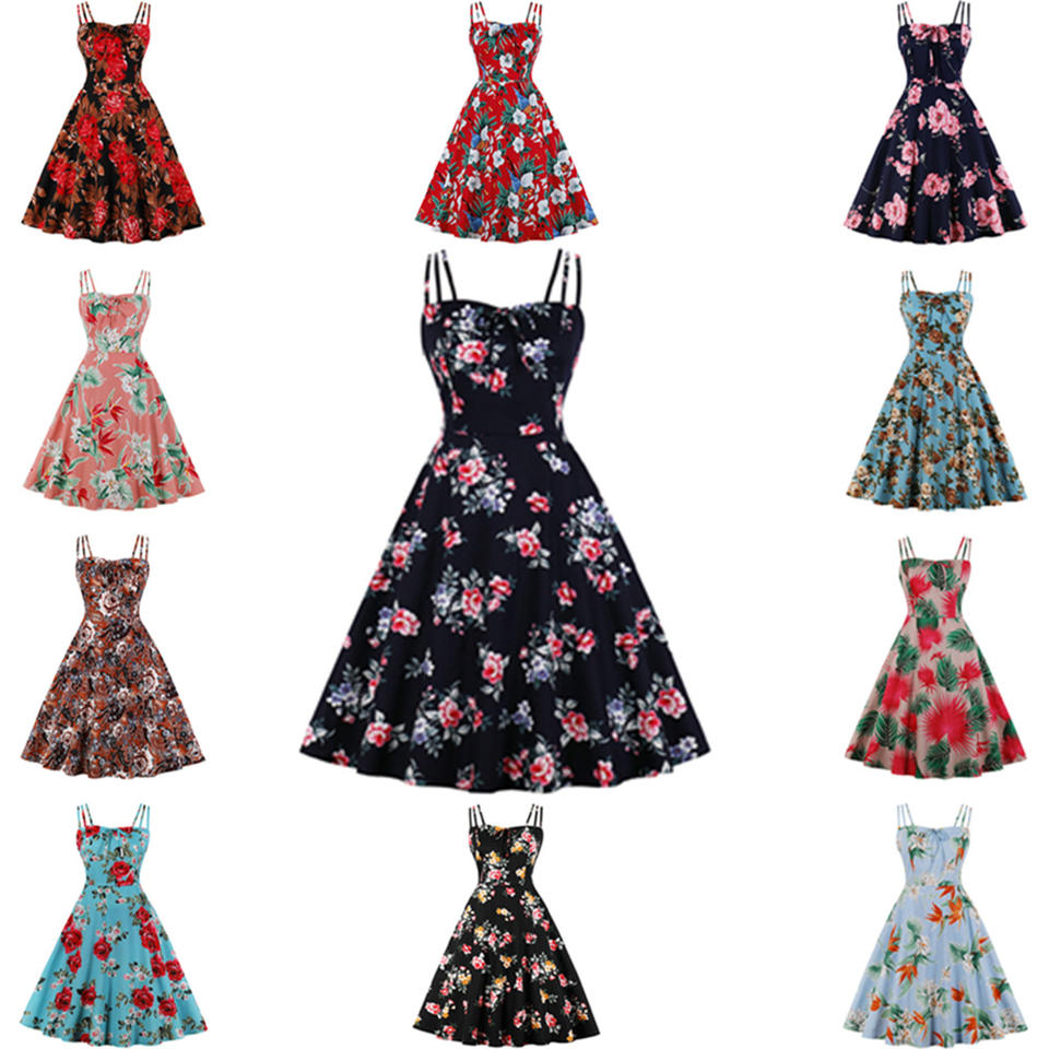 New Summer America Australia 50S Hot Sale Retro Printed Plus Size Floral Sling Fashion Vintage Casual Party Dress