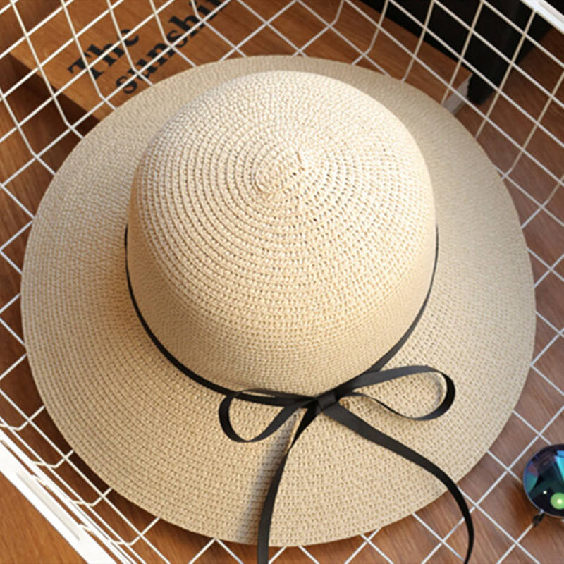 Nuovi cappelli da sole estivi a cupola alta presagio cappello di paglia da ragazza alla moda con fiocco berretto da spiaggia Casual paglia Flat Top cappellini Panama osso femminino