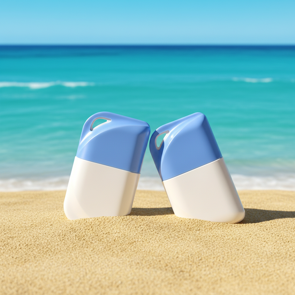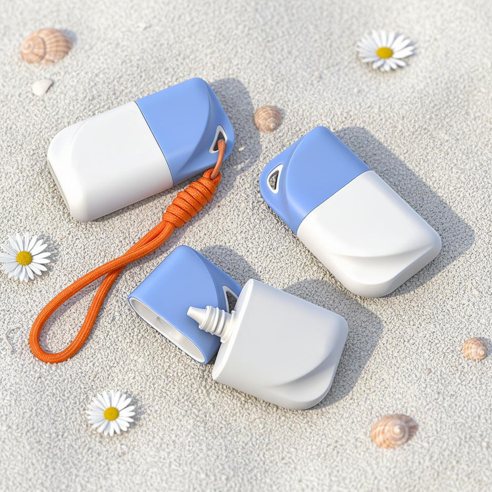 Nuova Lozione Cosmetica Essenziale Estiva con Protezione Solare e Isolante 30ml 50ml in Flacone di Plastica Bianco con Gancio e Serigrafia