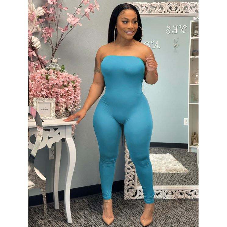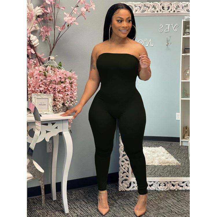 Nuovo Completo Estivo da Donna: Top Corto Senza Spalline a Costine Tinta Unita e Pantaloni, Set 2 Pezzi
