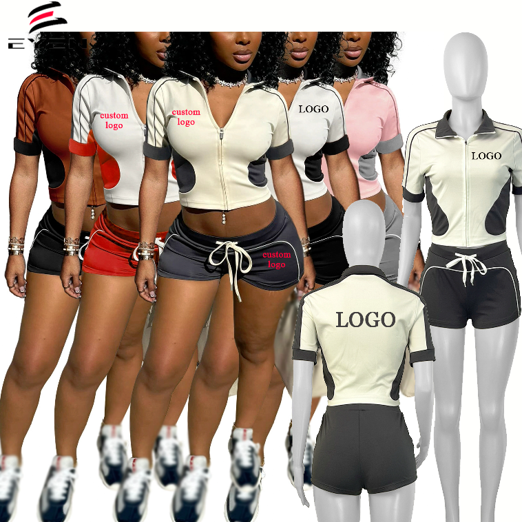 New Summer Women Clothes Short Sleeve Crop Jacket and Shorts 2 Piece Set Casual Street Joggers Two Piece Set for Women Outfit