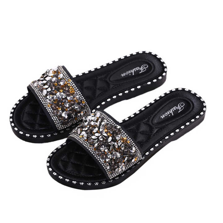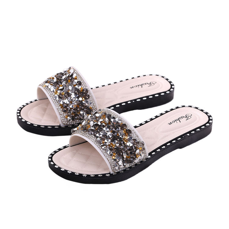 Products Name:Women Shiny Rhinestone Flat Gladiator Sandals Beach Sandals Shoes