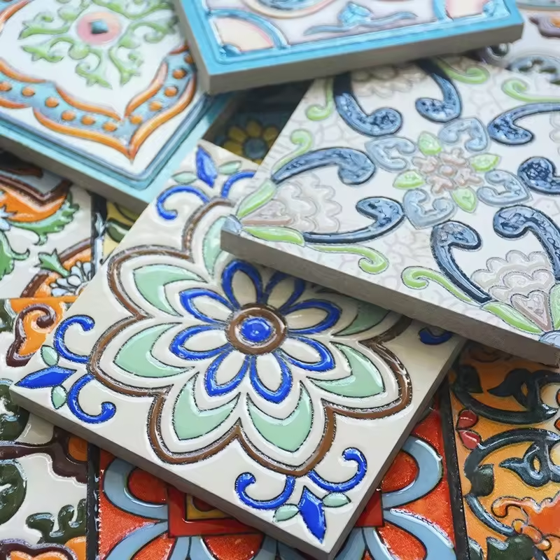 New Trend 100x100mm Flower Art Polished Glazed Porcelain Tiles Handmade Encaustic Ceramic Tile for Kitchen Backsplash Background