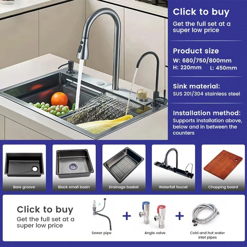 Lavello in acciaio inossidabile fatto a mano di nuova tendenza, vano singolo intelligente, lavello da cucina protettivo multistrato