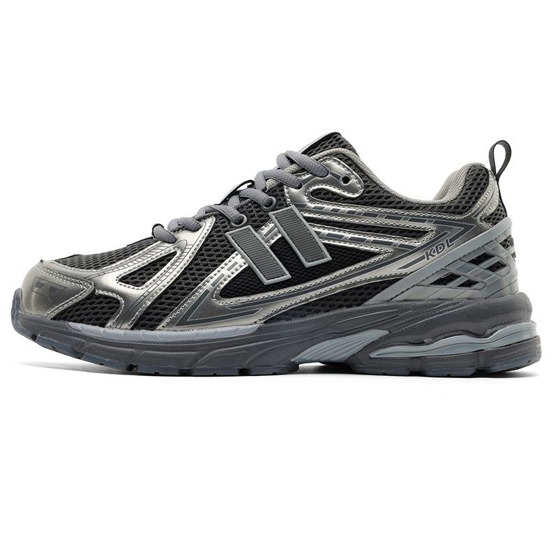 New Trend Scarpe running da uomo Mod. E0628 grigio/argento – tomaia pelle sintetica, suola composite, stringate, stile retro dad
