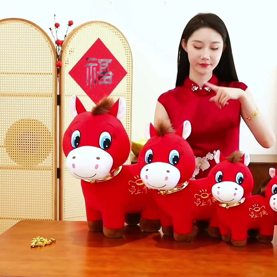 New Trends Chinese Zodiac Red Horse Plush Toy Custom Lucky Charm Pony Stuffed Animal Plush Toys for Fortune & Wealth