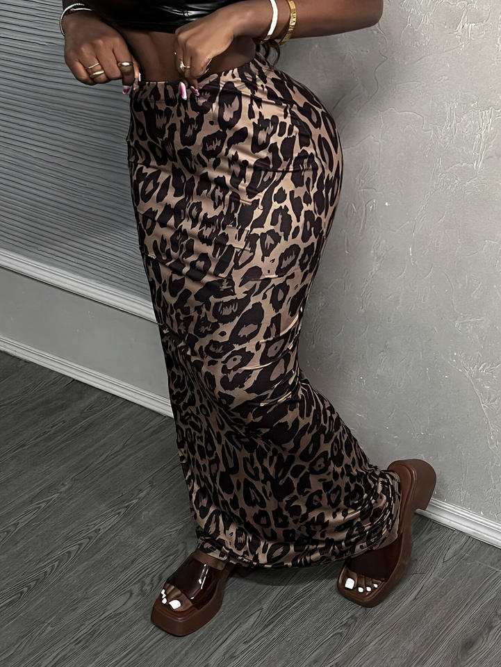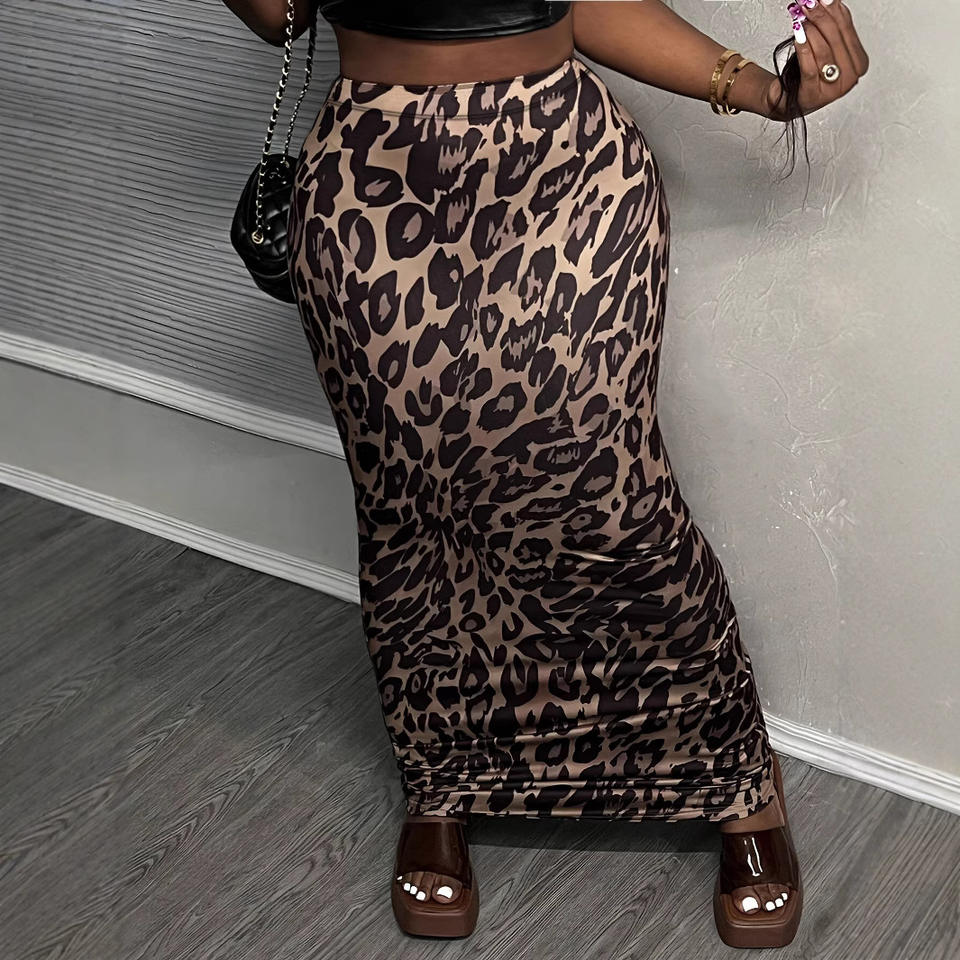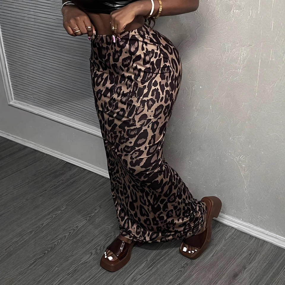 Nuova Gonna Midi Trendy per Donna, Stampa Leopardata in Tessuto Denim, Casual per Estate e Autunno con Logo in Vita