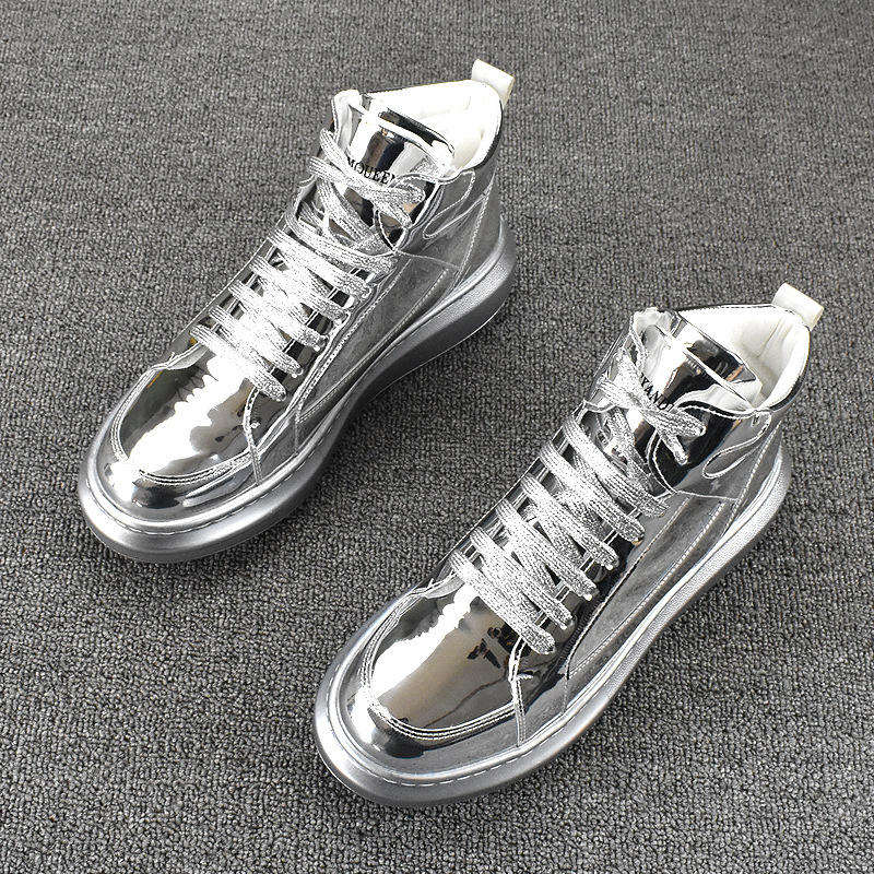 New Trendy High Top Casual Shoes Men's Walking Shoes Gold