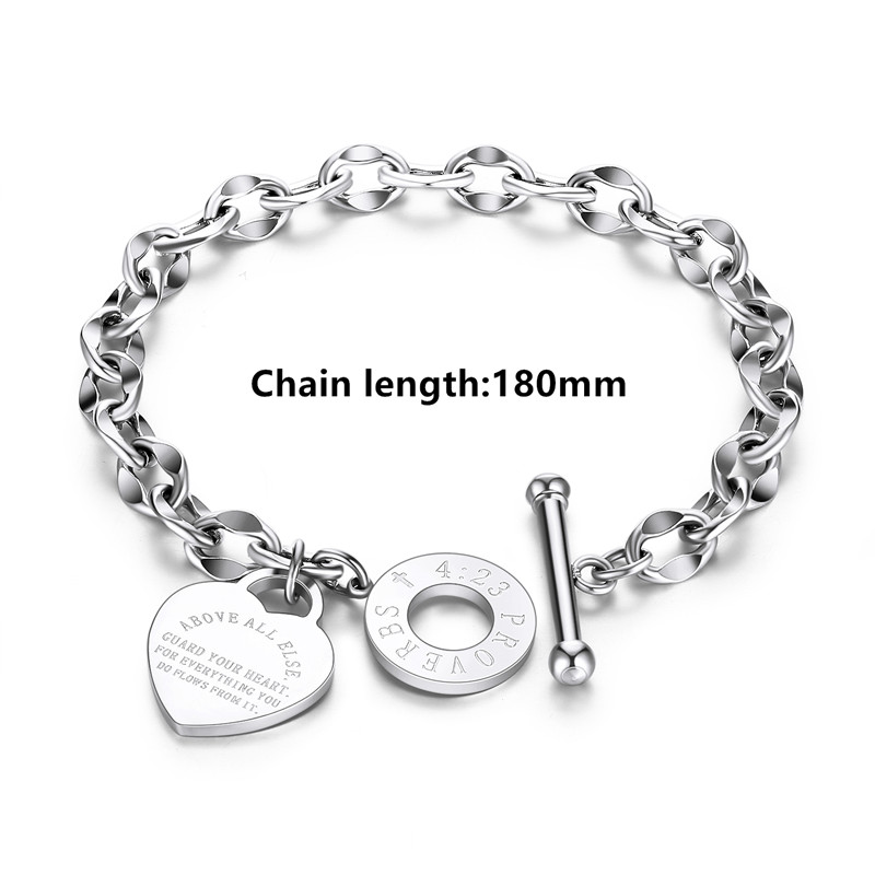 Meng Yong Bracciale a catena con chiusura OT placcato oro rosa in acciaio al titanio, ciondolo cuore personalizzabile per donna
