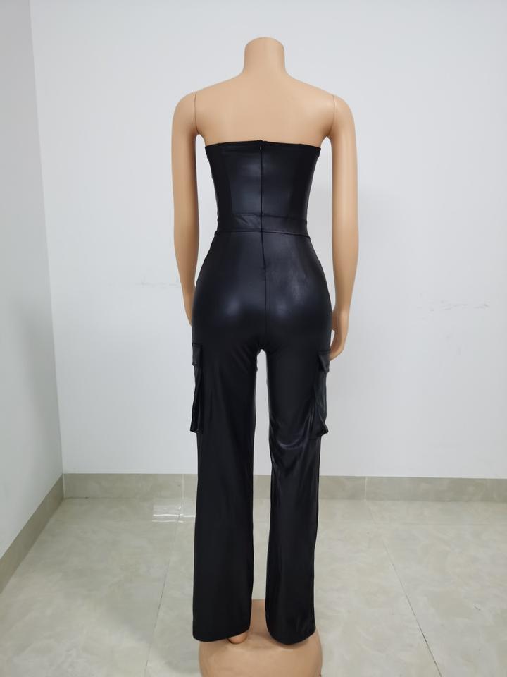 Nuove tute da donna alla moda con tasche a spalla morbida in pelle nera tute Casual in pelle Cargo tute da donna