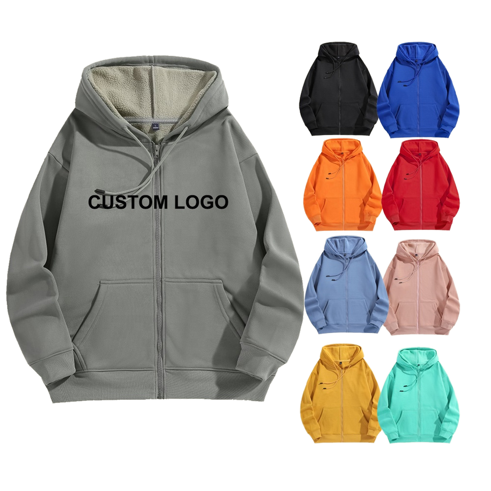 Nuova Felpa con Cappuccio Unisex Personalizzabile con Zip Intera, Oversize, Pesante, Calda per l'Inverno, Casual, con Stampa a Rilievo, Nera e Rossa