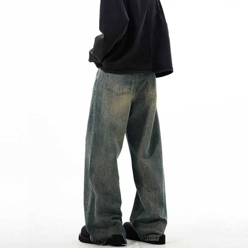 Nuovo Jeans Vintage in Denim lavato da uomo americano Cleanfit lisci a gamba larga pantaloni larghi pantaloni lunghi a vita media Casual da uomo