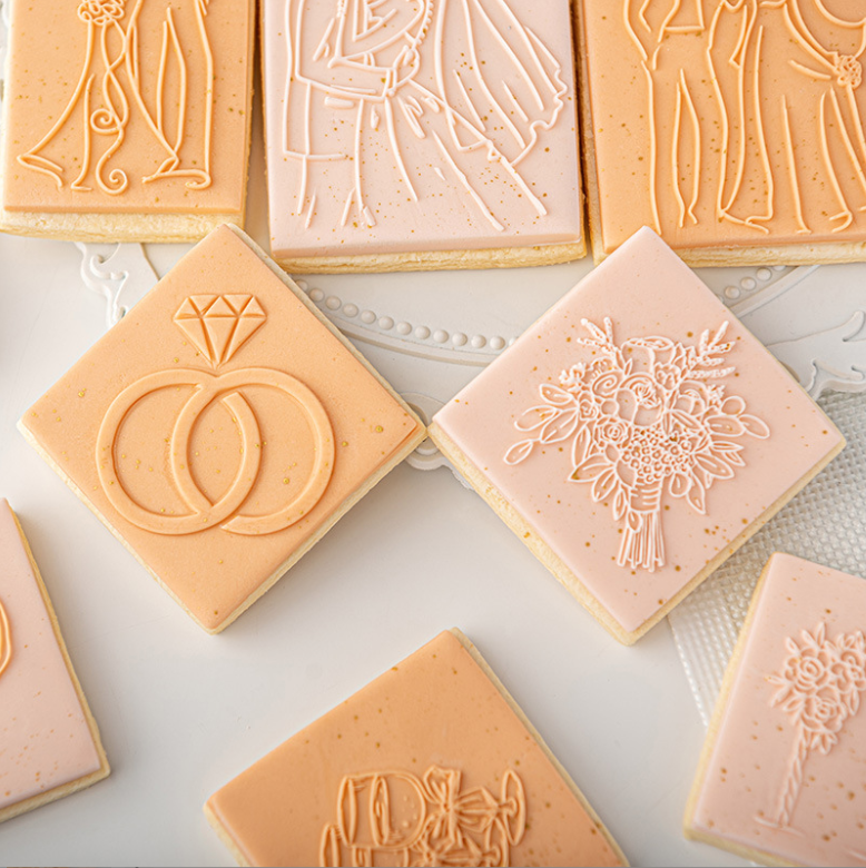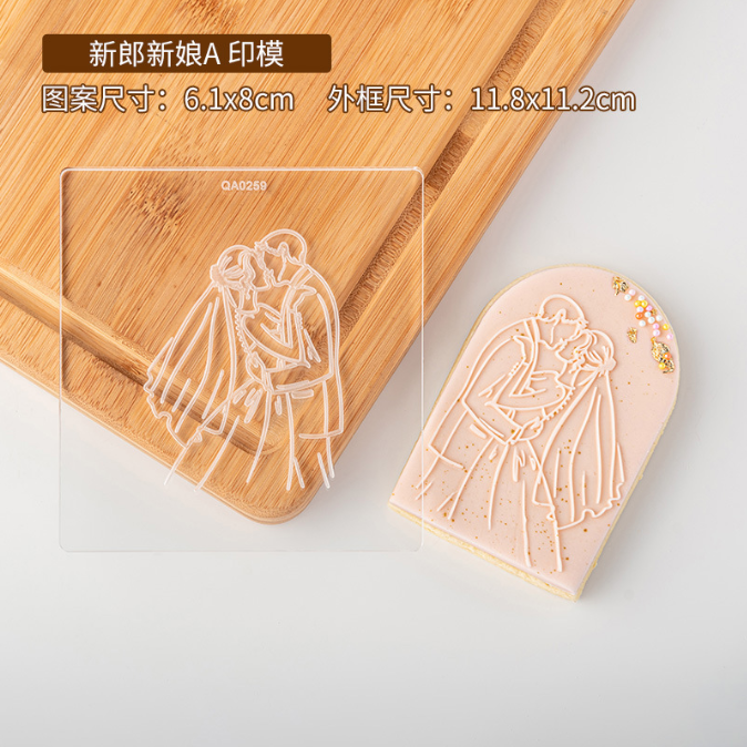 New Wedding Bride Groom Wedding Dress Diamond Ring Fondant Icing Cookie Mold Acrylic Embossing Mold Plastic Cookie Cutter