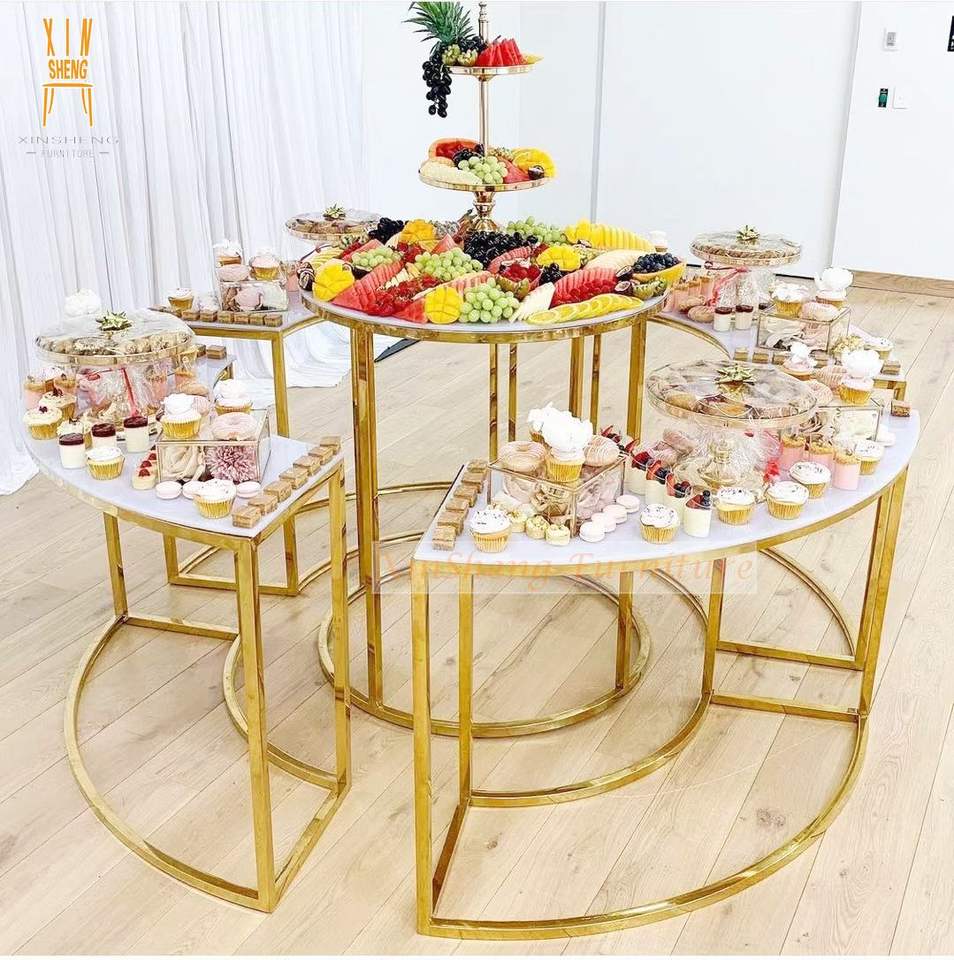New Wedding Event Cake Dessert Food Decorative Gold White Floor Cake Table