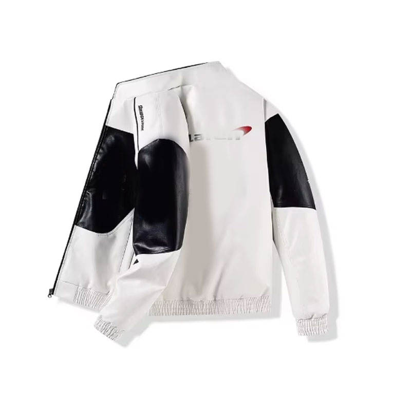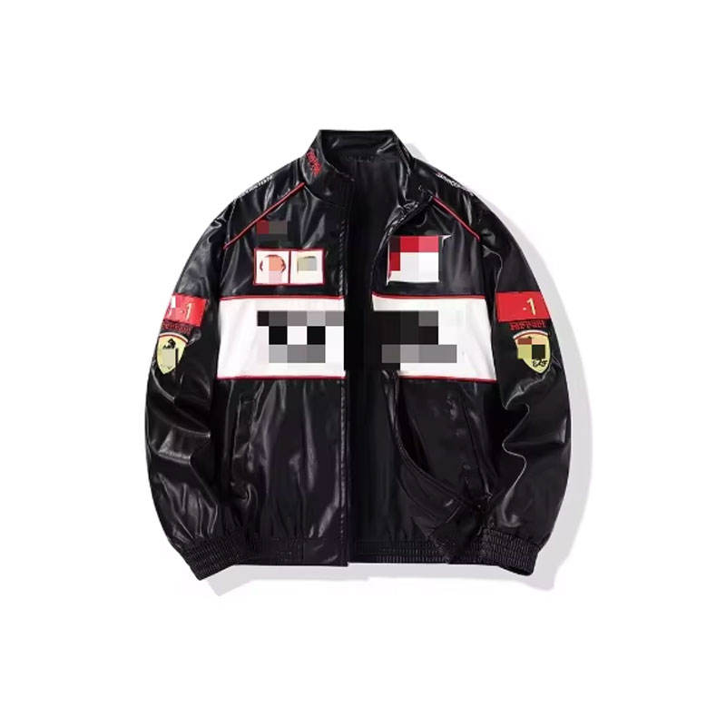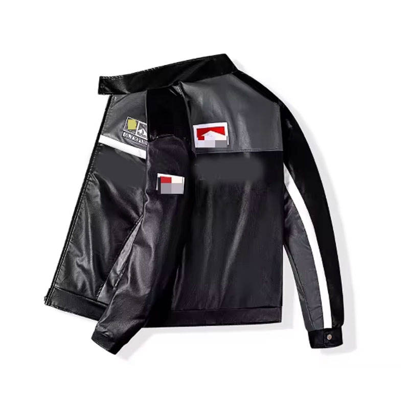 New Winter Hip Hop Leather Jacket for Men Women Embroidered Cow Leather Stand Collar Front Logo Luxury Custom F1 Racing Design