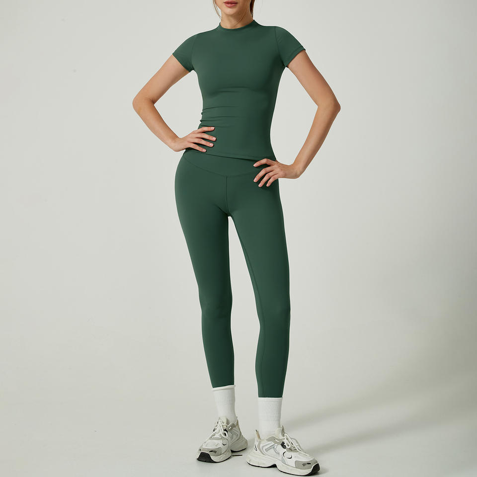 Nuovo Completo Sportivo da Donna ad Asciugatura Rapida, Traspirante, con Maniche Corte e Pantaloni Yoga a Vita Alta Modellanti, Set da Palestra per Donne