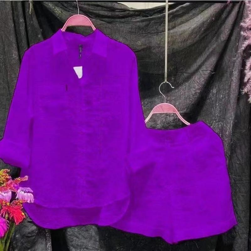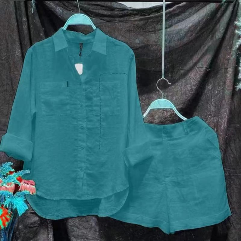 New Women's Casual Outfits Cotton Linen Solid Color Long Sleeve Shirt With Short Shorts Summer Two Piece Set Wholesale