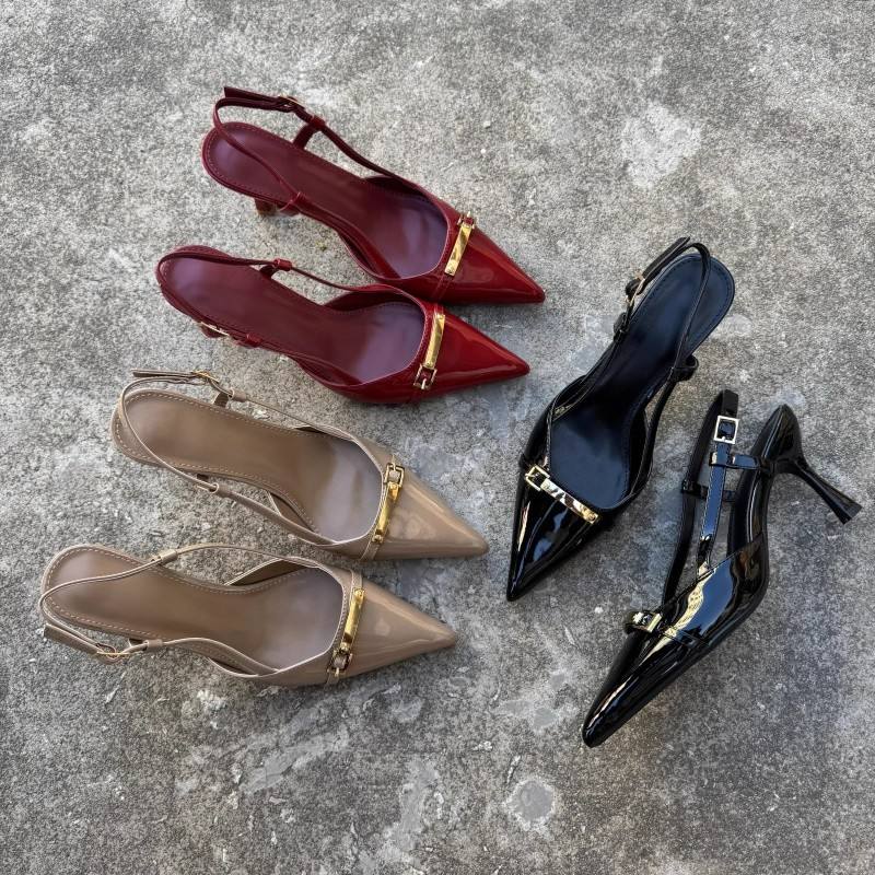 Nuove scarpe da sposa rosse con Slingback da donna tacchi alti francesi con cinturino rosso e vino sandali con tacco alto vuoti