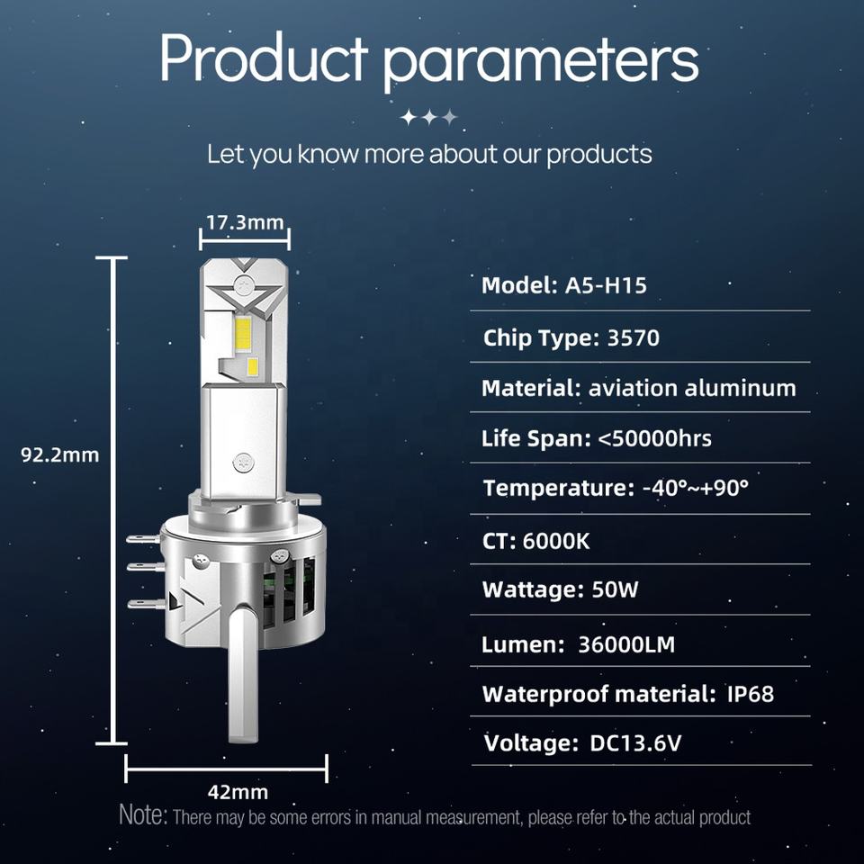 New Xenplus A5 High Power CSP3570 50W 36000LM 6000K Mini Size H15 Canbus Led Lamp Car Bulb Headlight for Mercedes Benz Audi BMW