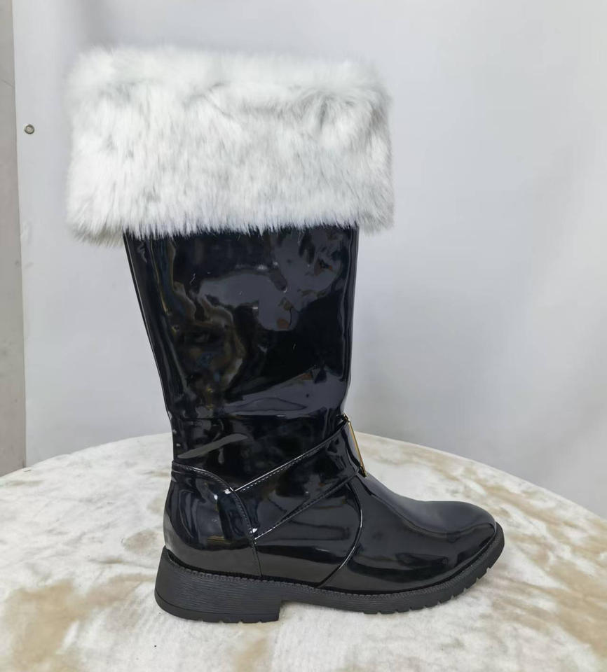 Stivali di Babbo Natale in Pelle PU con Pelliccia Bianca per Capodanno e Natale, Costumi di Halloween, Stivaletti Taglia Grande, Vendita all'Ingrosso