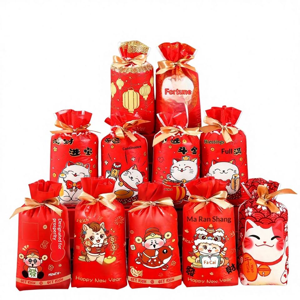 New Year's Year Horse Snowflake Crisp Packaging Drawstring Resealable Bag Nougat Baking Biscuits Self-sealing Candy Bundle