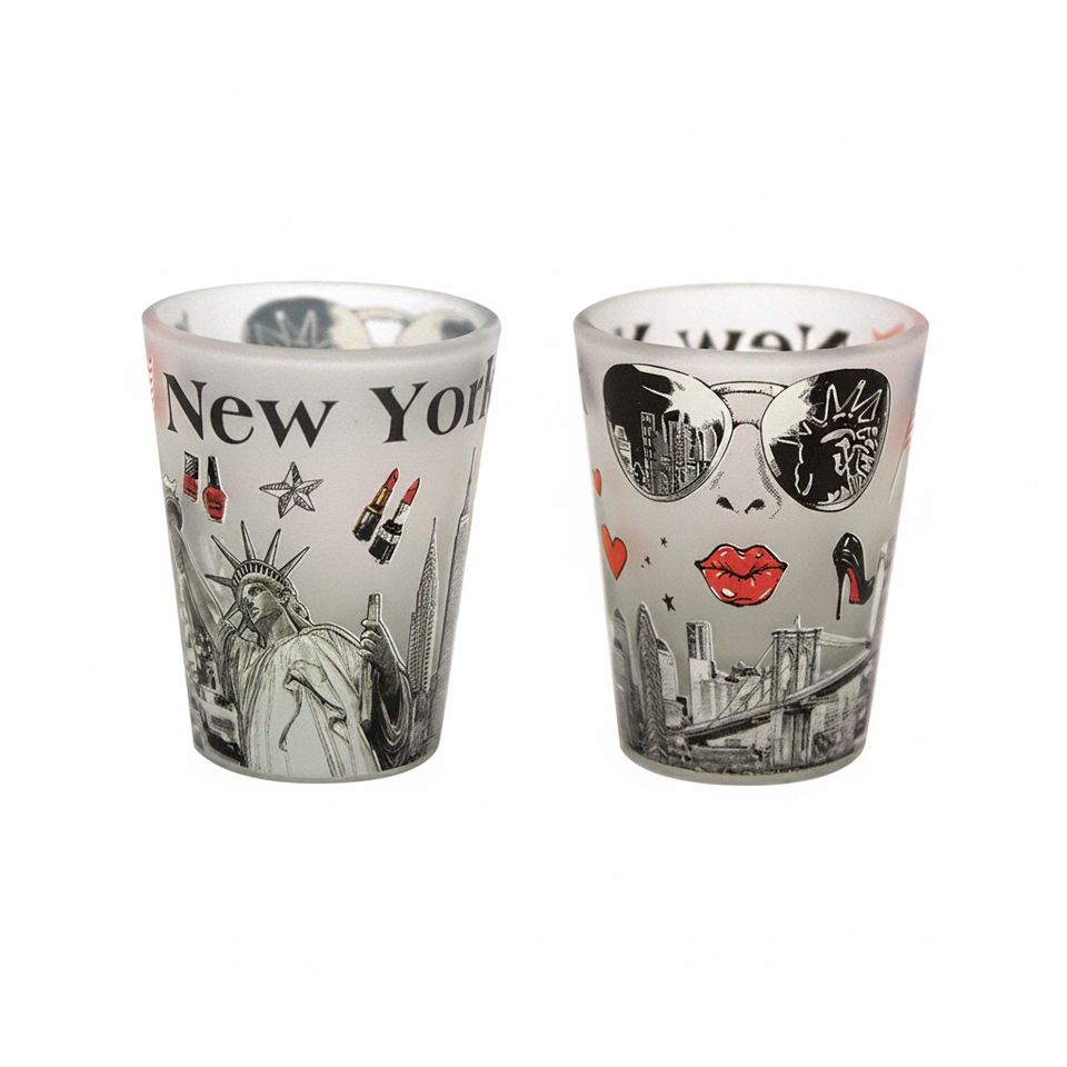 New York 2.5\" Frosted Glass Shot Glass Set Customizable Mini American Style for Water Wine Beer Coffee Tea 144PCS/CS