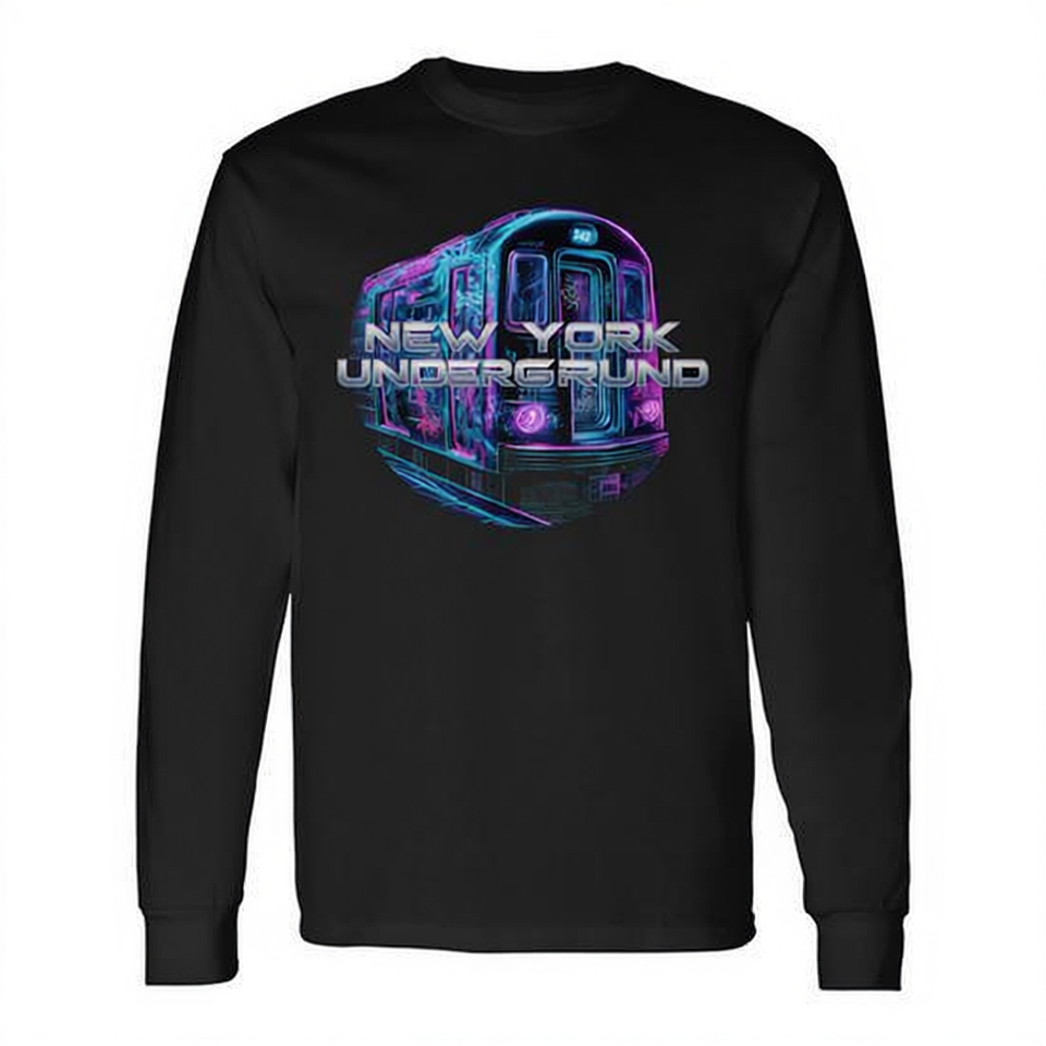 T-shirt a maniche lunghe New York Underground, design urbano, tema città, unisex, per adulti, stampa digitale